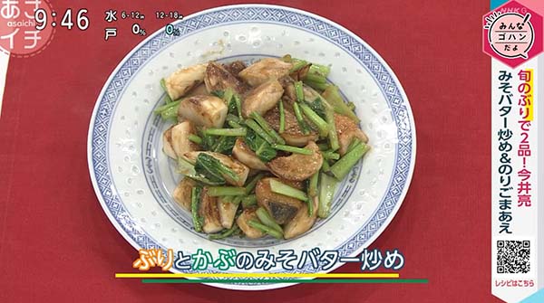 2026年1月28日、NHK「あさイチ」で紹介された、「ぶりのみそバター炒め」の作り方。