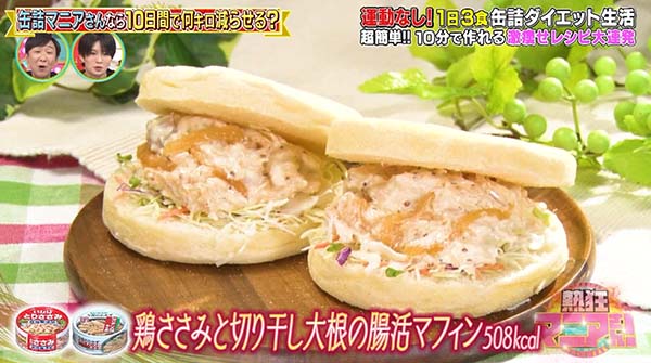 2026年1月31日の熱狂マニアで紹介された「鶏ささみと切り干し大根の腸活マフィン」のレシピです。
