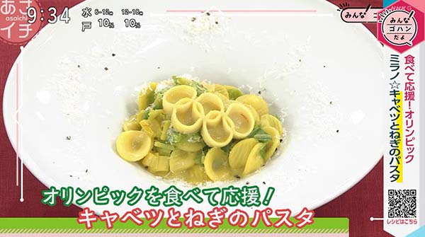 2026年2月9日、NHK「あさイチ」で紹介された、「キャベツとねぎのパスタ」の作り方。