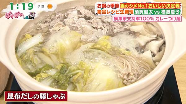 2026年2月9日の「ぽかぽか」で紹介された「昆布だしの豚しゃぶ鍋のシメ・カレーつけ麺」の作り方。