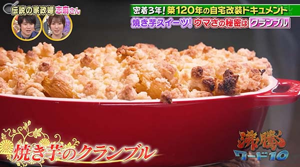 2026年2月13日放送の沸騰ワード10で放送の家政婦の志麻さんの「焼き芋のクランブルのレシピ」のご紹介。