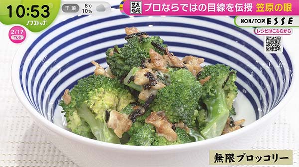 2026年2月17日、「ノンストップ」で紹介された「無限ブロッコリー」のレシピ。