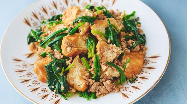 2026年2月20日、「ノンストップ」で紹介された、「ほうれん草と厚揚げの中華炒め」のレシピ
