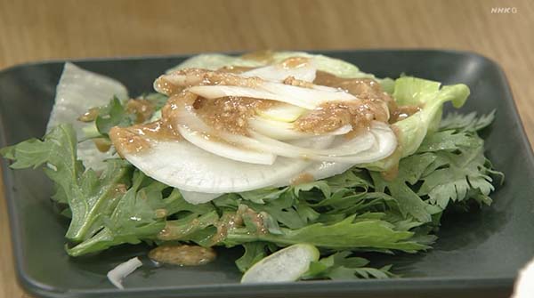 万能な特製だれ:ごまやみその風味が重なり合ったたれは、どんな具材にも合い、ドレッシングとしても優秀です。