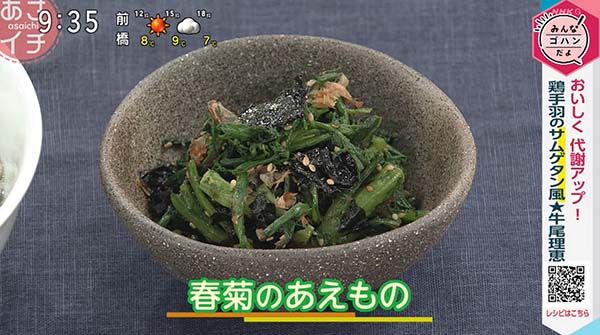 2026年2月17日、NHK「あさイチ」で紹介された、「春菊のあえもの」の作り方