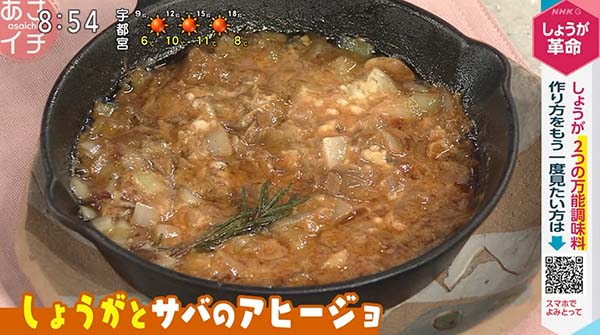 2026年2月18日、NHK「あさイチ」で紹介された、「しょうがとサバのアヒージョ」のレシピをご紹介します。