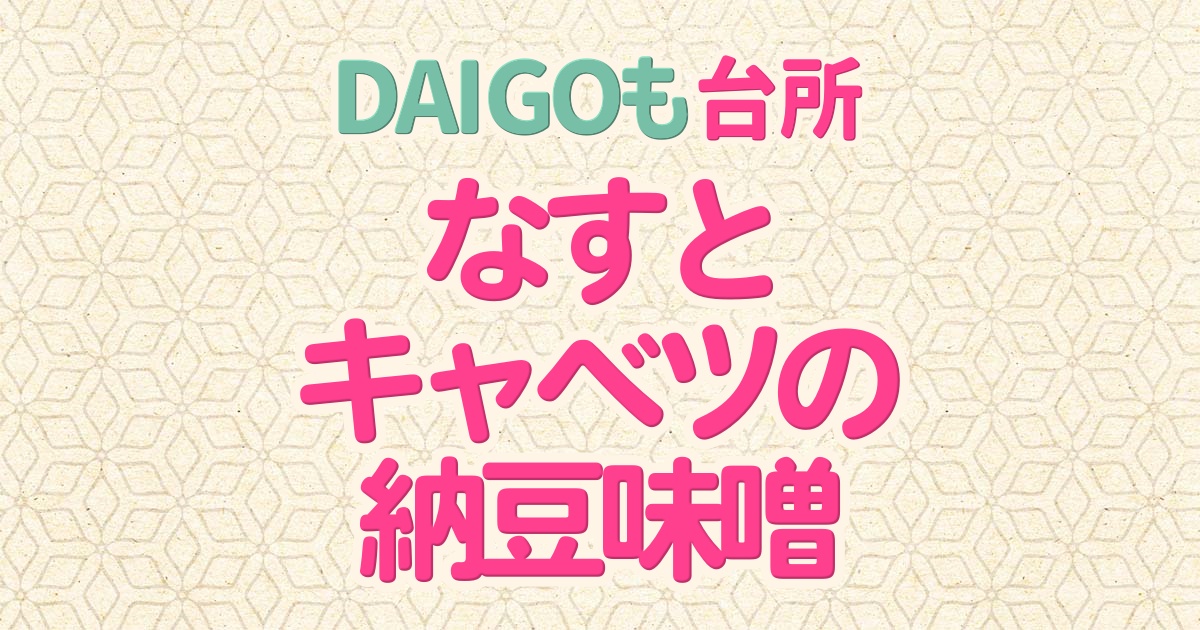 【DAIGOも台所】なすとキャベツの納豆味噌のレシピ。上手に美味しく!発酵食品使って