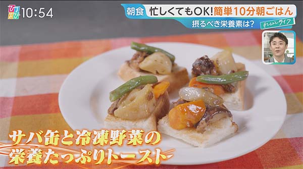 2026年3月5日、TBS「ひるおび」#ひるおびライフで紹介された、10分で栄養抜群!朝ごはん「サバ缶と冷凍野菜のトースト」の作り方をご紹介!