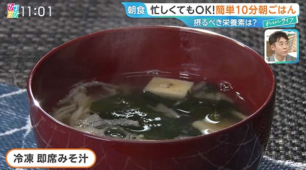 2026年3月5日、TBS「ひるおび」#ひるおびライフで紹介された、10分で栄養抜群!朝ごはん「冷凍 即席みそ汁」の作り方をご紹介!