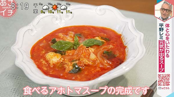 2026年3月11日、NHK「あさイチ」で紹介された、「アホトマスープ」の作り方。