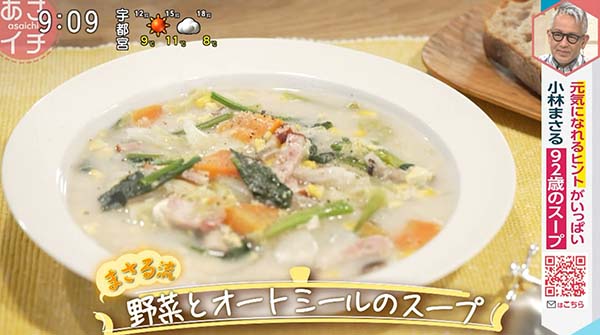 2026年3月11日、NHK「あさイチ」で紹介された、「野菜とオートミールのスープ」の作り方