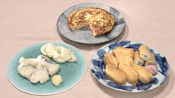 教えてくれたのは「さわらと新たまねぎの天ぷら・春にんじんと豆腐の卵焼き・しらすとせりのおいなりさん」の3品。