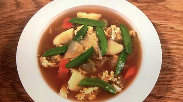 - 【A】を加えて味を調え、仕上げに絹さやを加える。