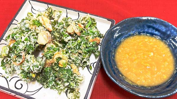 2026年3月17日、「ノンストップ」で紹介された「菜の花とホタテのかき揚げ」のレシピ。