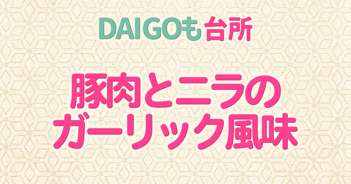 2026年3月18日のDAIGOも台所の「豚肉とニラのガーリック風味・鶏のニラ醤(ジャン)風味・にらのパスタ」の中から「豚肉とニラのガーリック風味」の作り方をご紹介します。