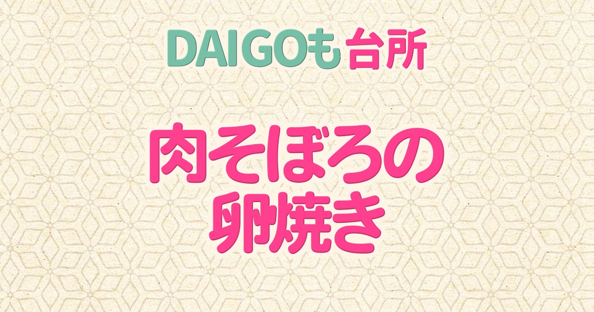2026年3月23日のDAIGOも台所の「ピーマンとちくわのきんぴら・肉そぼろの卵焼き・鮭とじゃがいもの青のり風味」の中から「肉そぼろの卵焼き」の作り方をご紹介します。