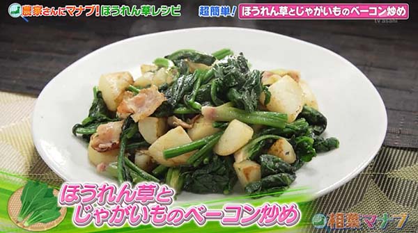 【相葉マナブ】ほうれん草とじゃがいものベーコン炒めの作り方。マナブ!旬の産地ごはん〜ほうれん草〜