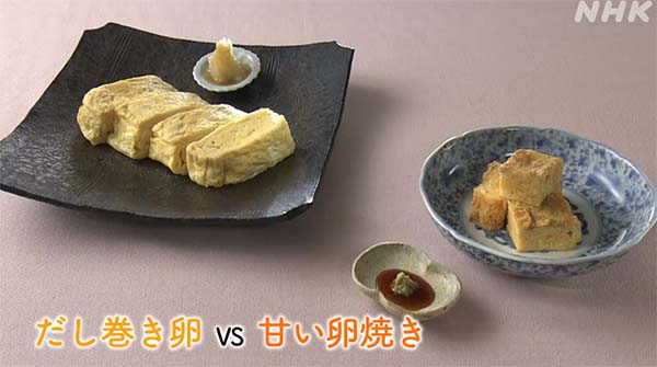 今日のレシピは料理研究家の大原千鶴さんが、「だし巻き卵&だし巻き卵入りうどん・甘い卵焼き&のり巻き」の4品を紹介。