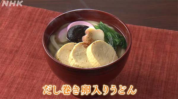 2026年4月8日放送の、きょうの料理・だし巻き卵VS甘い卵焼き「だし巻き卵入りうどん」の作り方をご紹介。