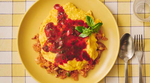 ふわふわの半熟卵をチキンライスにのせるだけの簡単調理で、憧れのお店のような仕上がりを楽しめます。ケチャップにトマトジュースを加えた、バジル香る特製の「TJソース」がフレッシュで爽やかな味わいの決め手となります。コーンを加えた食感豊かなライスも魅力です。