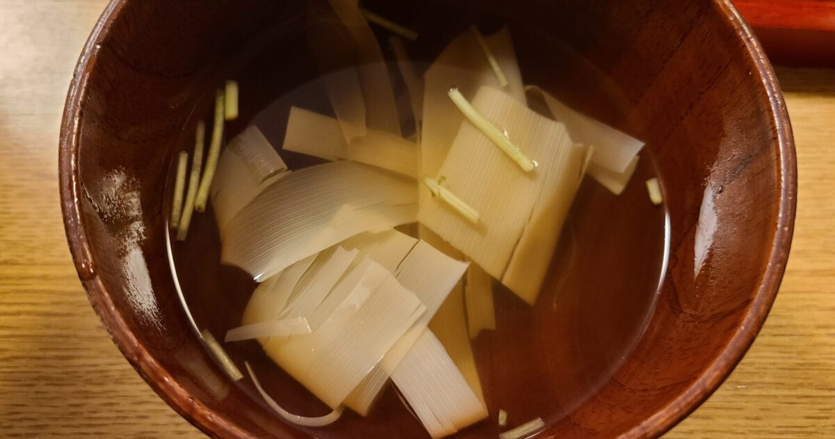 味の染みた「たけのこの煮物」の煮汁をつかって、しっかり味が決まる美味しいお吸い物が完成します。