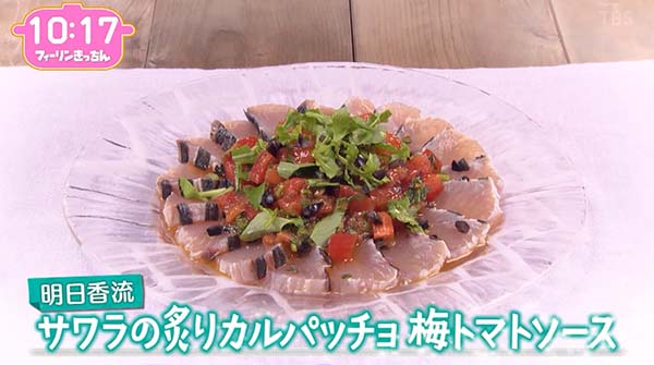 2026年4月10日、TBS「フィーリンきっちん」で紹介された、「サワラのカルパッチョ 梅トマトソース」の作り方。