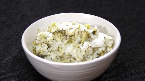 ほろほろの食感:丸ごと入れたブロッコリーが炊飯器でゆっくりと加熱されることで、ほろほろに崩れてごはんと一体化します。