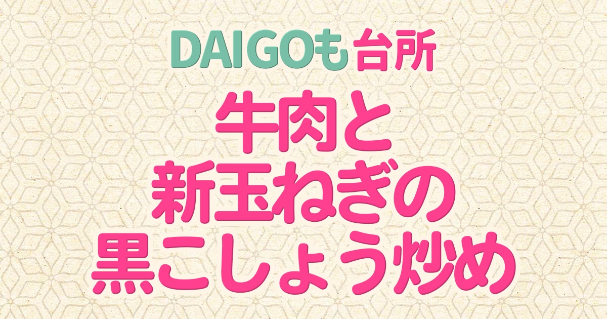2026年4月13日のDAIGOも台所の「牛肉と新玉ねぎの黒こしょう炒め・新玉ハヤシライス・新玉ねぎのミルクスープ」の中から「牛肉と新玉ねぎの黒こしょう炒め」の作り方をご紹介します。