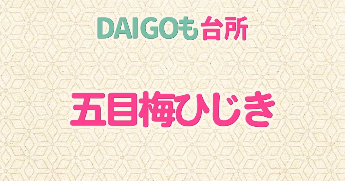 2026年4月15日のDAIGOも台所の「ささみの梅の香和え・梅風味のなめろう丼・五目梅ひじき」の中から「五目梅ひじき」の作り方をご紹介します。