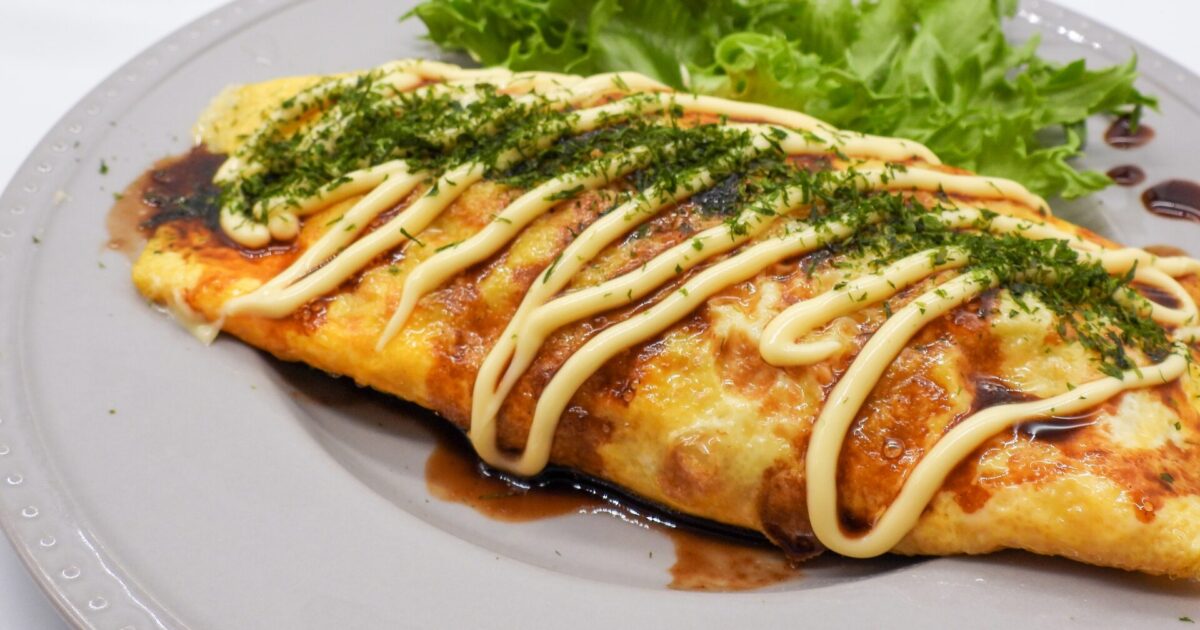 - 卵に砂糖、塩を入れて溶きほぐし、サラダ油をひいたフライパンに卵を入れる。卵が固まってきたら具材をのせ、半分に折りたたむ。