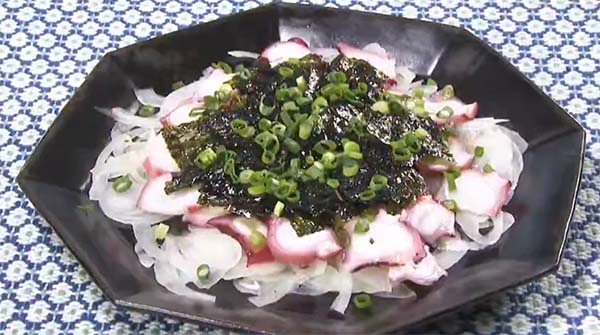2026年4月15日、TBS「フィーリンきっちん」で紹介された、「新玉ねぎとタコの韓国風サラダ」の作り方。