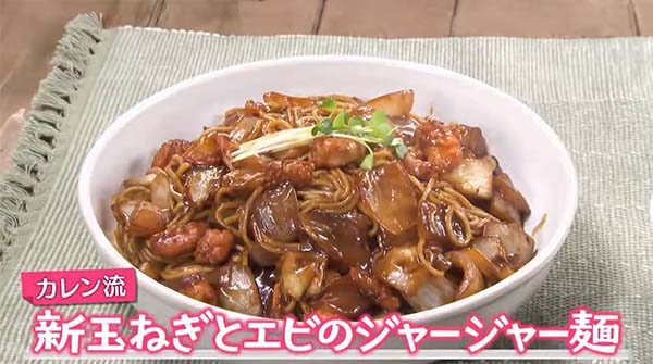 2026年4月16日、TBS「フィーリンきっちん」で紹介された、「新玉ねぎとエビのジャージャー麺」の作り方。