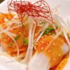 - お皿に盛り付け、付属の調味油と刻んだカイワレをのせれば完成!