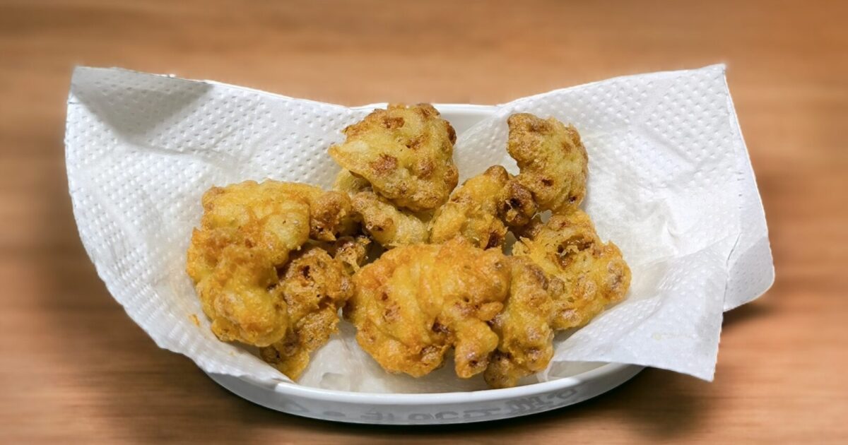 - 油を180℃に予熱し、④をスプーンで適量すくって揚げる