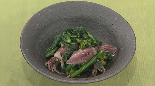 2026年4月16日、NHK「あさイチ」で紹介された、「ほたるいかと菜の花のからし和え」の作り方。