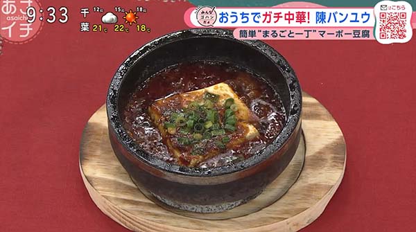 2026年4月20日、NHK「あさイチ」で紹介された、「マーボーまるごと一丁豆腐」の作り方。