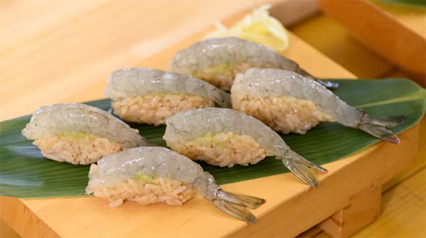 - シャリを握り、わさびを付けて、海老と握れば完成!