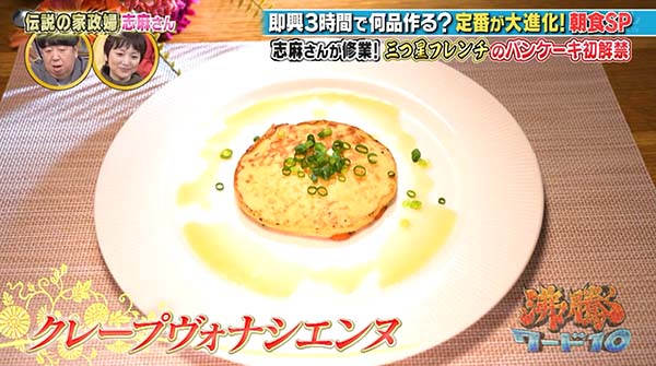今日のレシピは、「巻かないだし巻き卵や納豆とスーテーキ?の組み合わせ、さらに特製パンケーキ」など、志麻さんのアイデア満載の朝食レシピ。