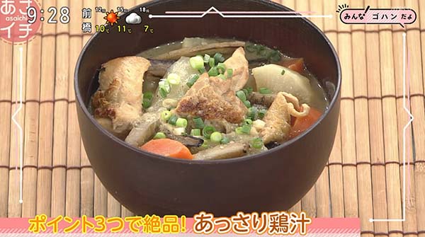 2026年1月15日、NHK「あさイチ」で紹介された、「あっさり鶏汁」の作り方。